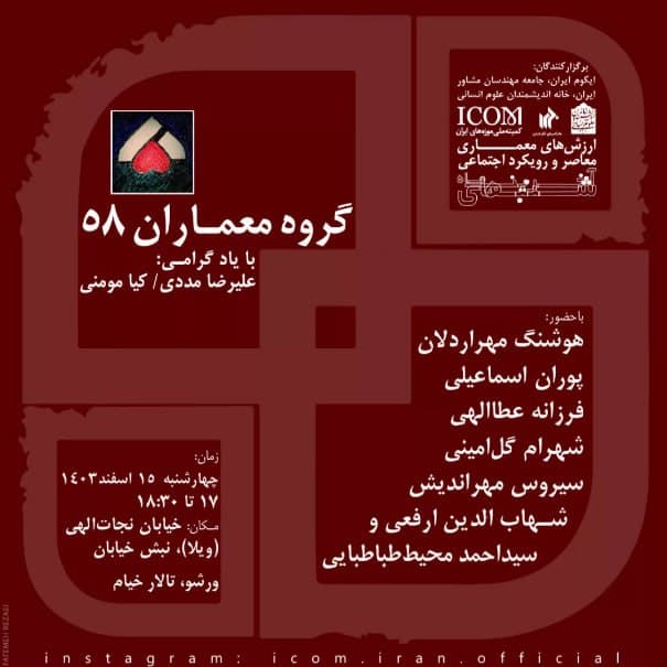 به گزارش روابط عمومی خانه اندیشمندان علوم انسانی، نشست "ارزش های معماری معاصر و رویکرد اجتماعی" به همت کمیته ملی موزه های ایران و با همکاری خانه اندیشمندان علوم انسانی، روز چهارشنبه 15 اسفند 1403 ساعت 17 در سالن خیام خانه اندیشمندان علوم انسانی برگزار می شود.
