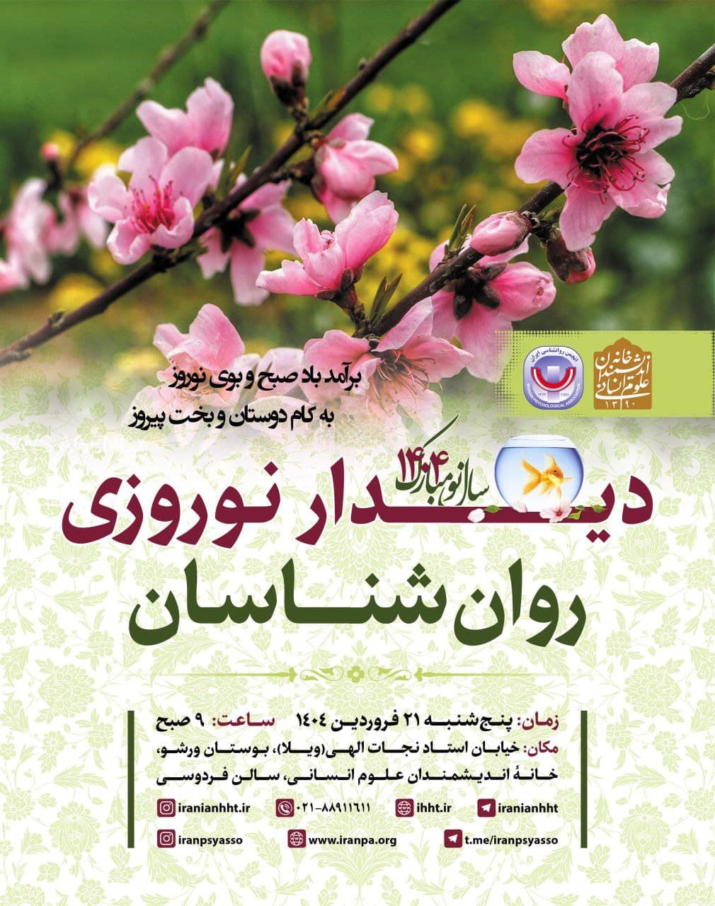 نشست "دیدار نوروزی روان شناسان" روز پنج شنبه 21 فروردین در سالن فردوسی خانه اندیشمندان علوم انسانی برگزار می شود.