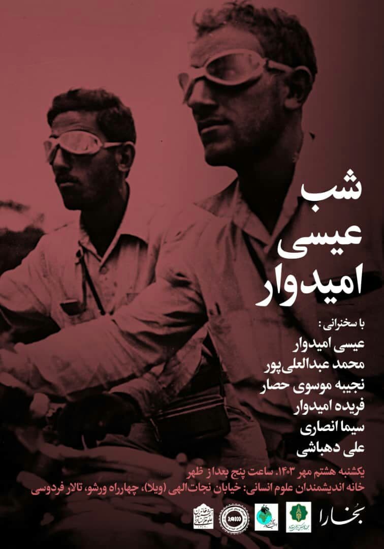 به گزارش روابط عمومی خانه اندیشمندان علوم انسانی، شب "عیسی امیدوار" به همت مجله بخارا و با همکاری خانه اندیشمندان علوم انسانی، روز یکشنبه 8 مهر 1403 ساعت 17 در سالن فردوسی خانه اندیشمندان علوم انسانی برگزار می شود.