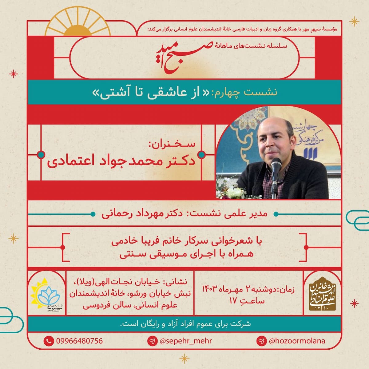 مدیر نشست: مهرداد رحمانی شایان ذکر است ورود برای عموم، آزاد و رایگان است.