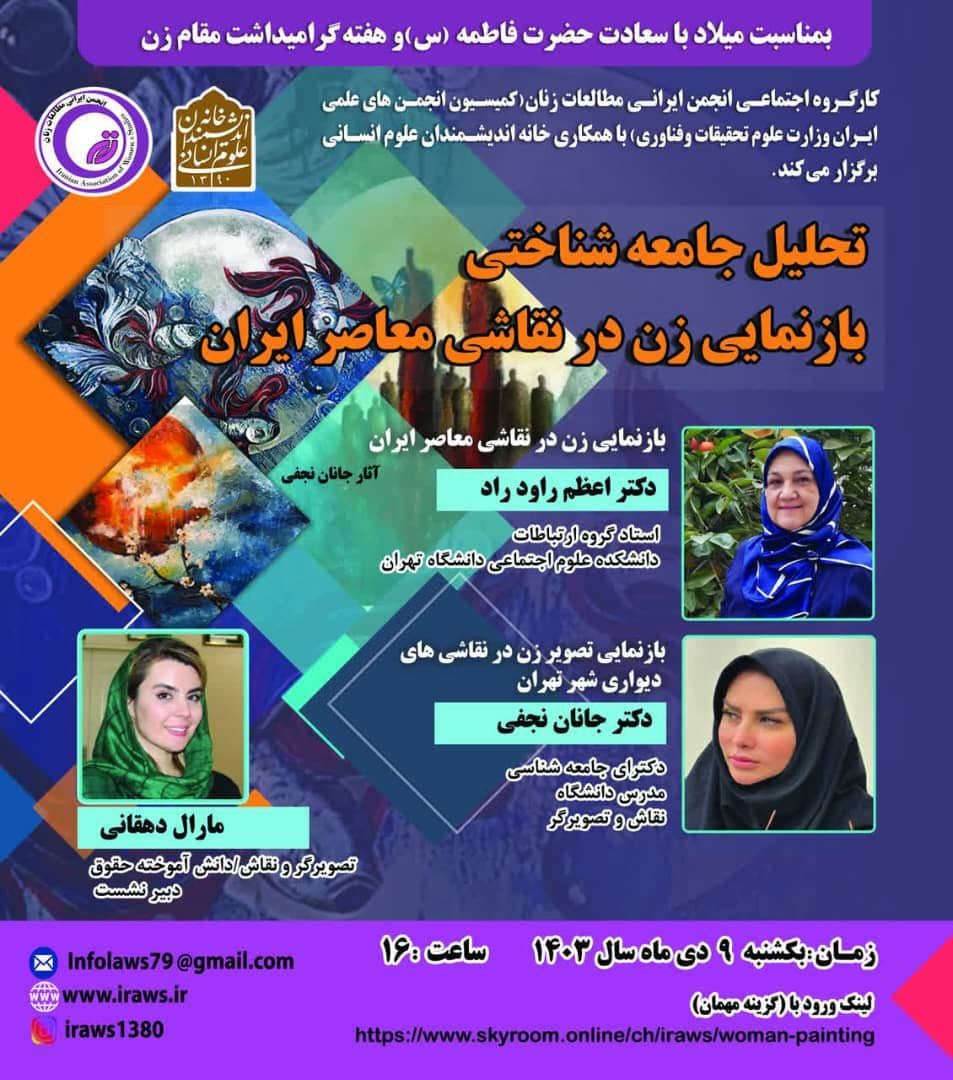 نشست "تحلیل جامعه شناختی بازنمایی زن در نقاشی معاصر ایران" روز یکشنبه 9 دی در بستر اسکای روم برگزار می شود.