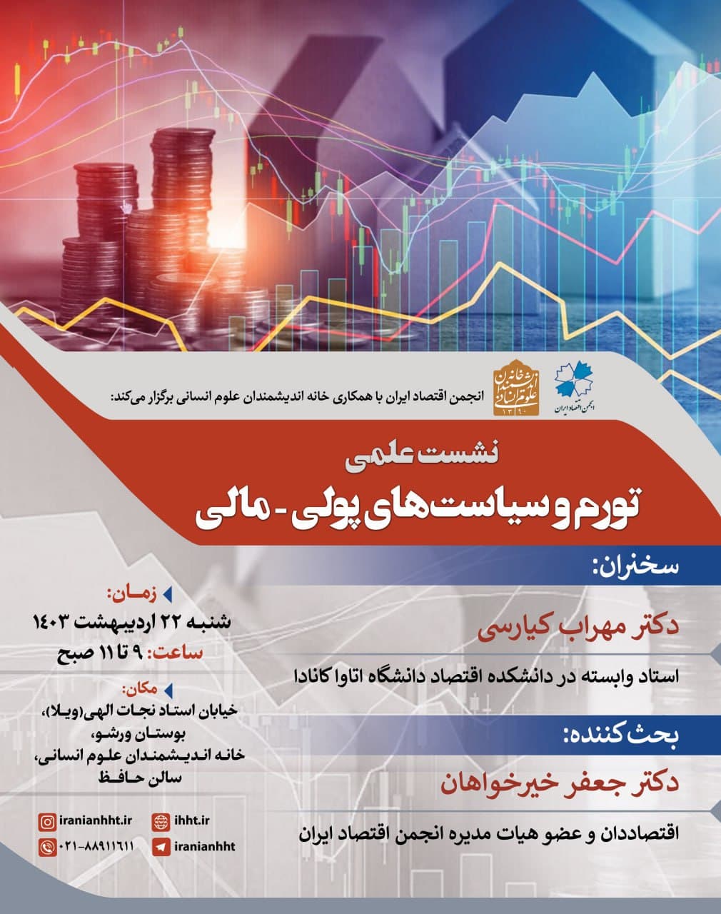 نشست "تورم و سیاست های پولی - مالی" روز شنبه 22 اردیبهشت در سالن حافظ خانه اندیشمندان علوم انسانی برگزار می شود.