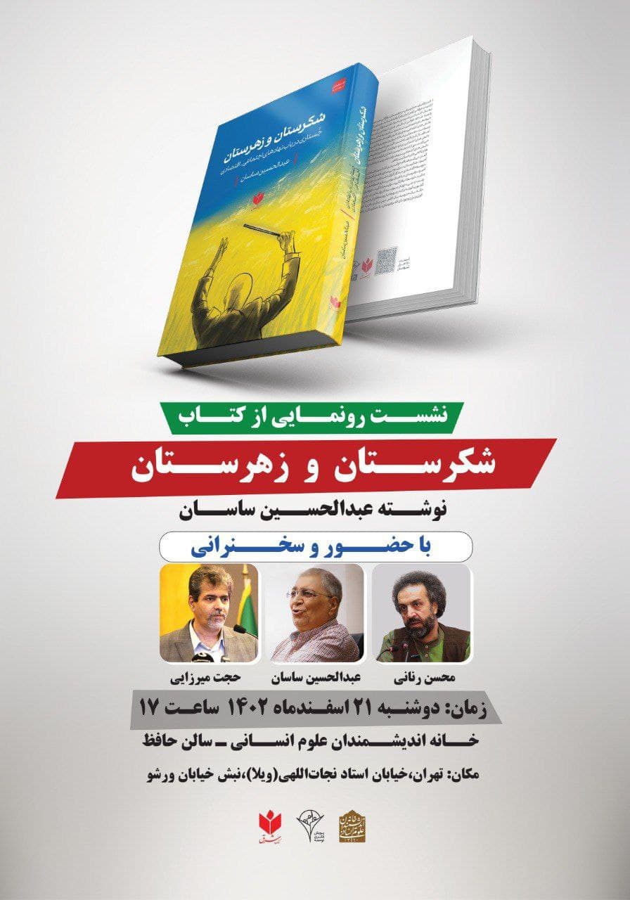 نشست "رونمایی از کتاب شکرستان و زهرستان" برگزار می شود