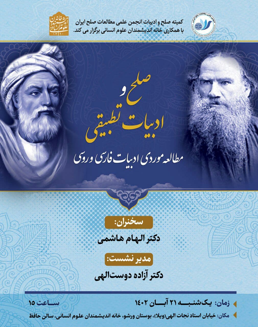 نشست "صلح و ادبیات تطبیقی" روز یکشنبه ۲۱ آبان در سالن حافظ خانه اندیشمندان علوم انسانی برگزار می شود.