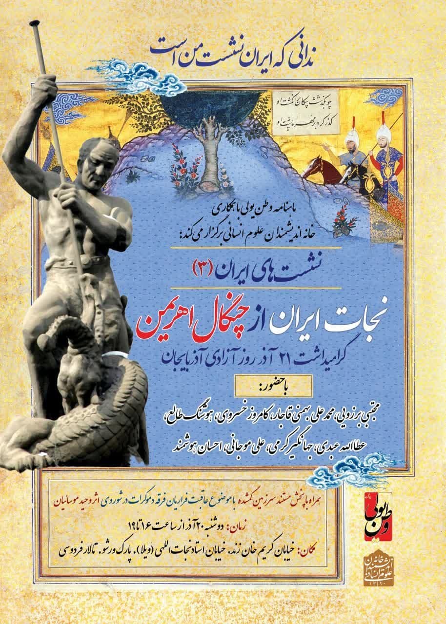 به گزارش روابط عمومی خانه اندیشمندان علوم انسانی، نشست "گرامیداشت روز آزادی آذربایجان" به همت موسسه نشریه وطن یولی و با همکاری خانه اندیشمندان علوم انسانی، روز دوشنبه ۲۰ آذر ۱۴۰۲ ساعت ۱۶ در سالن فردوسی خانه اندیشمندان علوم انسانی برگزار می شود.