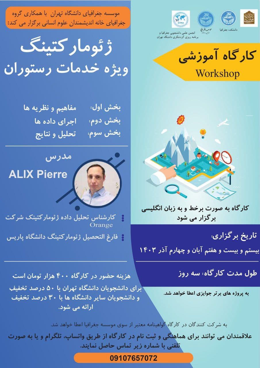 به گزارش روابط عمومی خانه اندیشمندان علوم انسانی، کارگاه ژئومارکتینگ؛ ویژه خدمات رستوران، به همت موسسه جغرافیای دانشگاه تهران و با همکاری خانه اندیشمندان علوم انسانی، روز یکشنبه 27 آبان 1403 به صورت آنلاین برگزار می شود.