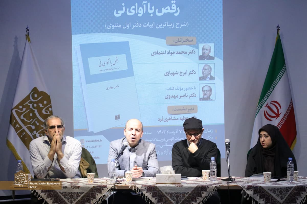 نشست "رونمایی از کتاب رقص با آوای نی" روز چهارشنبه ۷ آذر در سالن فردوسی خانه اندیشمندان علوم انسانی برگزار شد.