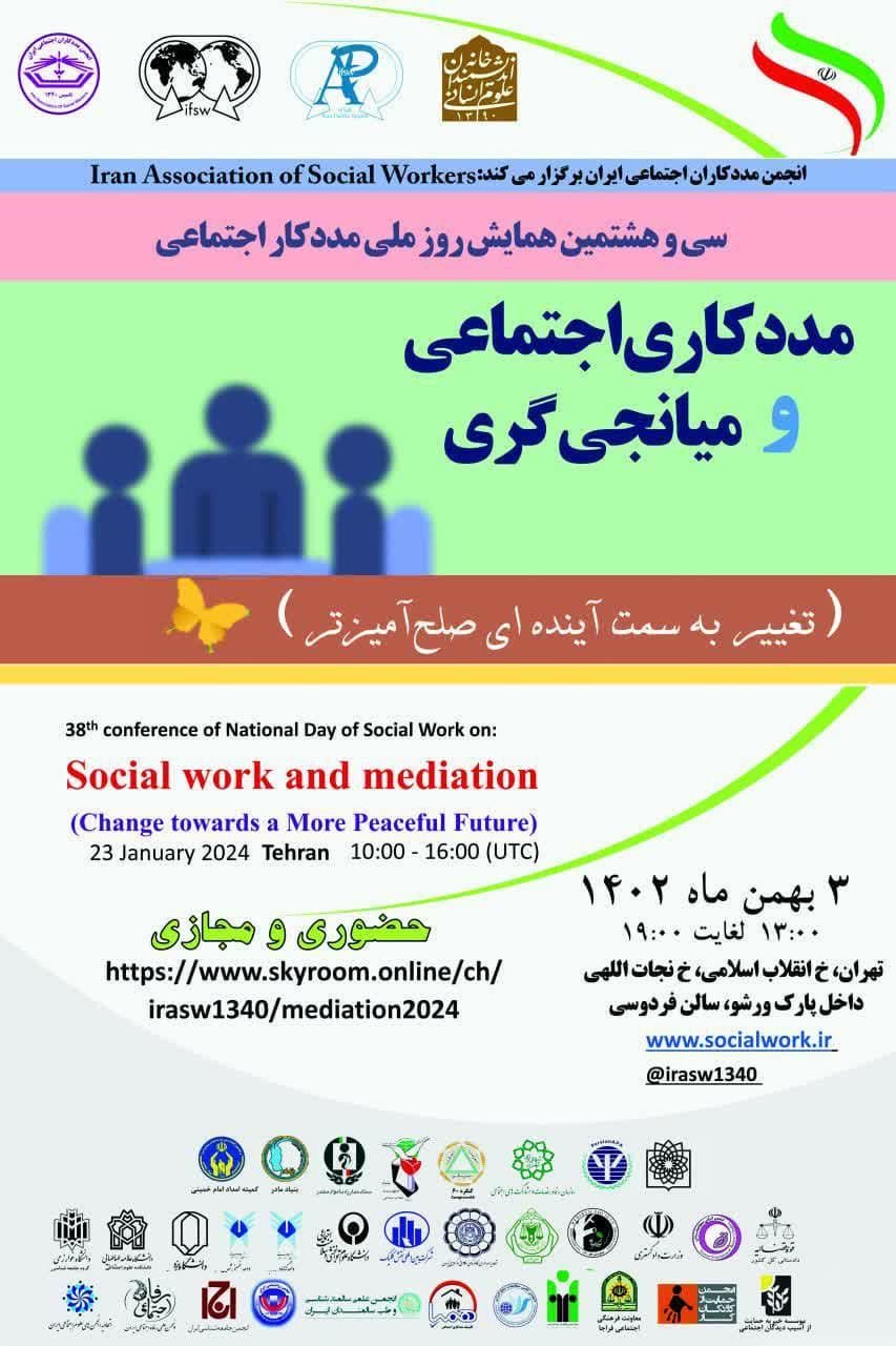 به گزارش روابط عمومی خانه اندیشمندان علوم انسانی، همایش "مددکاری اجتماعی و میانجی گری" به همت انجمن مددکاران اجتماعی ایران و با همکاری خانه اندیشمندان علوم انسانی، روز سه شنبه ۳ بهمن ۱۴۰۲ ساعت ۱۳ در سالن فردوسی خانه اندیشمندان علوم انسانی برگزار می شود.