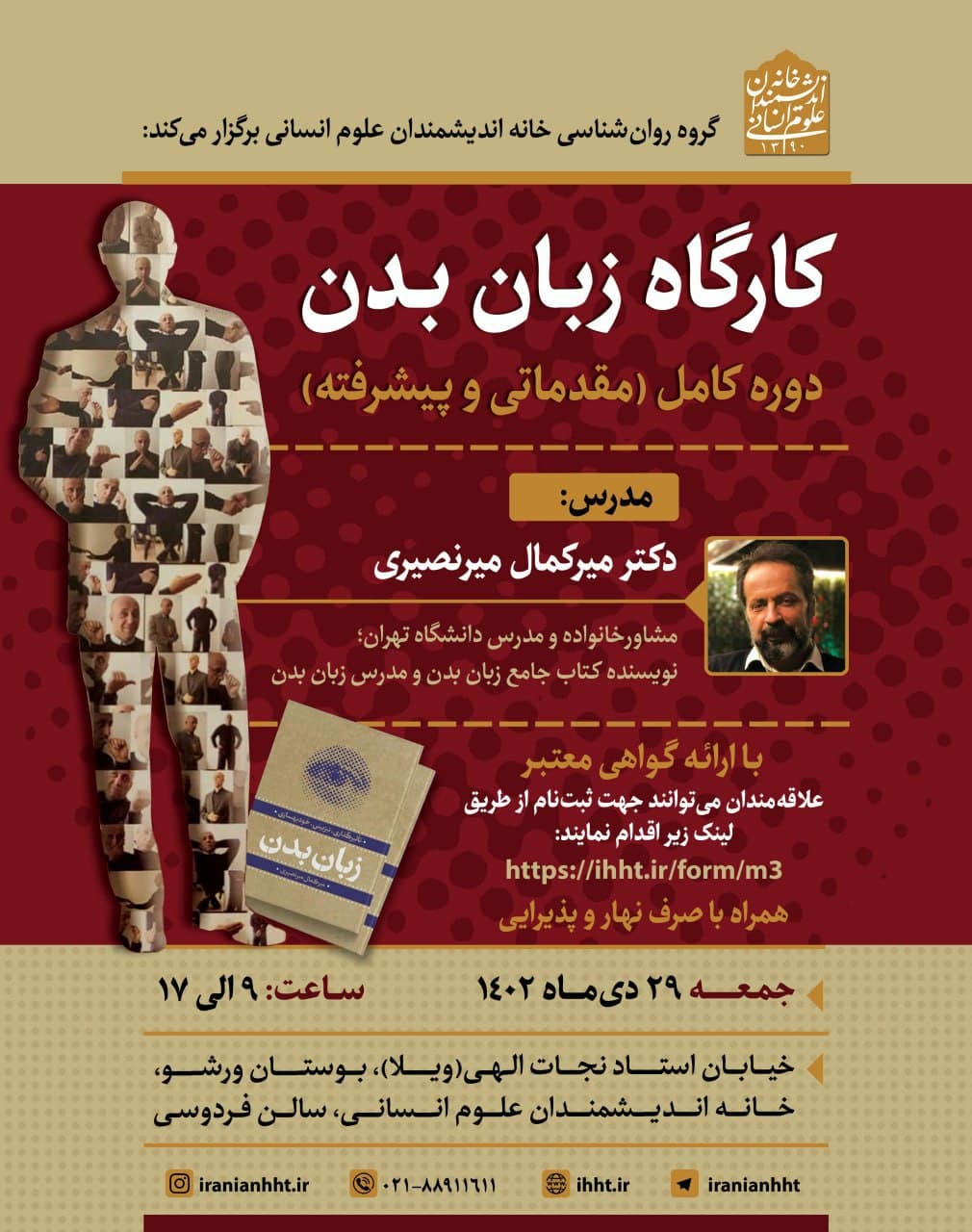 کارگاه تخصصی زبان بدن، روز جمعه ۲۹ دی در سالن فردوسی خانه اندیشمندان علوم انسانی برگزار می شود.