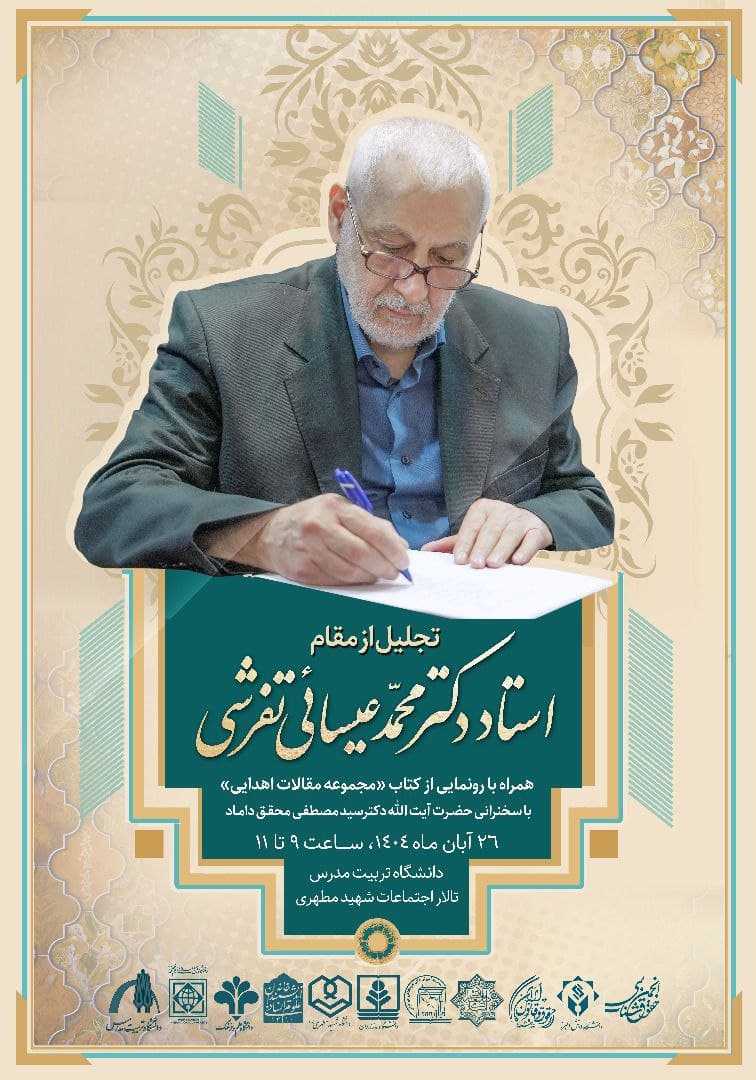 به گزارش روابط عمومی خانه اندیشمندان علوم انسانی، آیین تجلیل از مقام علمی دکتر محمد عیسائی تفرشی، به همت دانشگاه تربیت مدرس و با همکاری خانه اندیشمندان علوم انسانی، روز دوشنبه 26 آبان 1404 ساعت 9 با سخنرانی سید مصطفی محقق داماد در تالار شهید مطهری دانشگاه تربیت مدرس برگزار می شود.