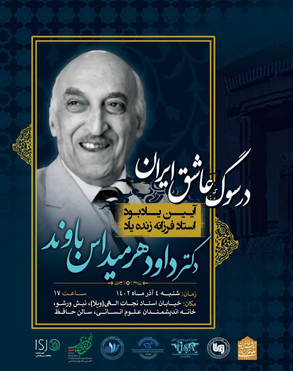 آیین یادبود "دکتر داود هرمیداس باوند" روز شنبه ۴ آذر در سالن حافظ خانه اندیشمندان علوم انسانی برگزار می شود.