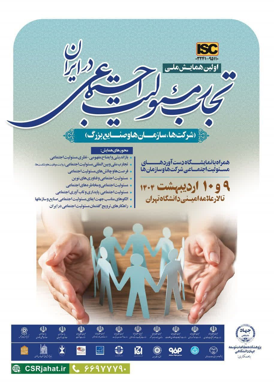 اولین همایش ملی تجارب مسئولیت اجتماعی در ایران، روزهای 9 و 10 اردیبهشت 1404 در تالار علامه امینی دانشگاه تهران برگزار می شود.