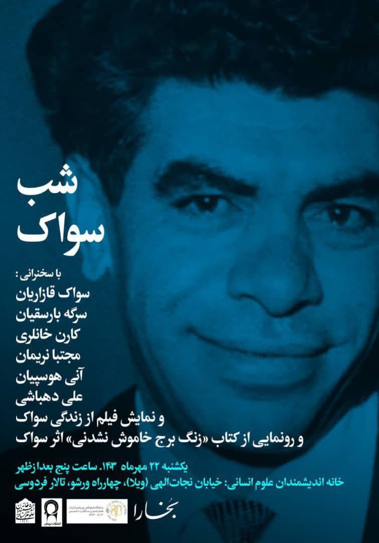 شب سواک، روز یکشنبه 22 مهر در سالن فردوسی خانه اندیشمندان علوم انسانی برگزار می شود.
