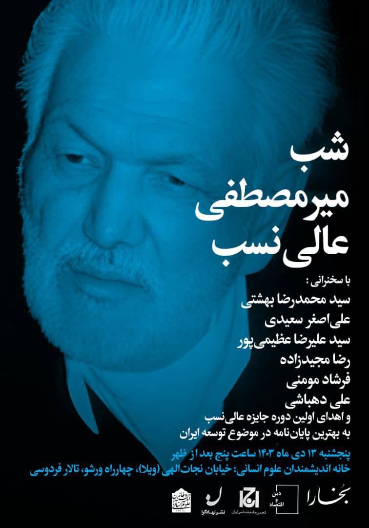 شب میر مصطفی عالی نسب، روز پنج شنبه 13 دی در سالن فردوسی خانه اندیشمندان علوم انسانی برگزار می شود.