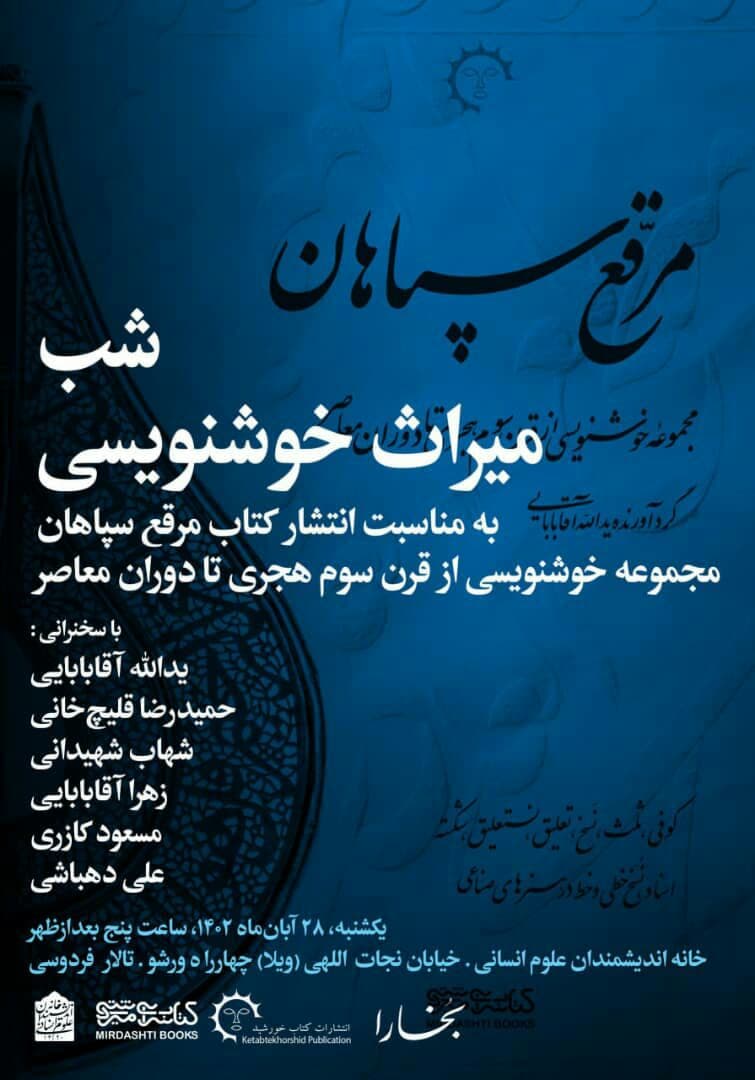 به گزارش روابط عمومی خانه اندیشمندان علوم انسانی، شب "میراث خوشنویسی" به همت مجله بخارا و با همکاری خانه اندیشمندان علوم انسانی، روز یکشنبه ۲۸ آبان ۱۴۰۲ ساعت ۱۷ در سالن فردوسی خانه اندیشمندان علوم انسانی برگزار می شود.