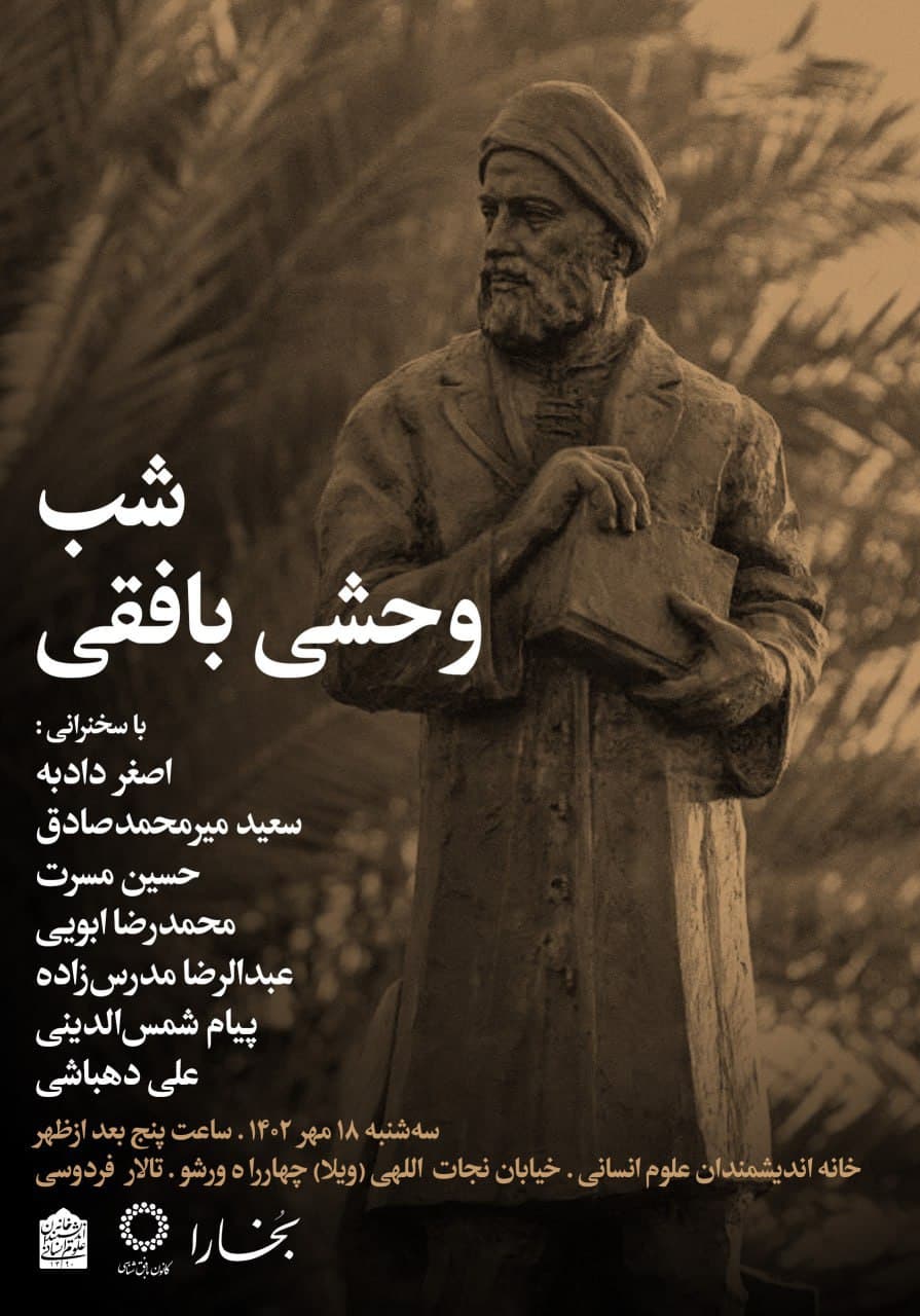 شب "وحشی بافقی" روز سه شنبه ۱۸ مهر در سالن فردوسی خانه اندیشمندان علوم انسانی برگزار می شود.