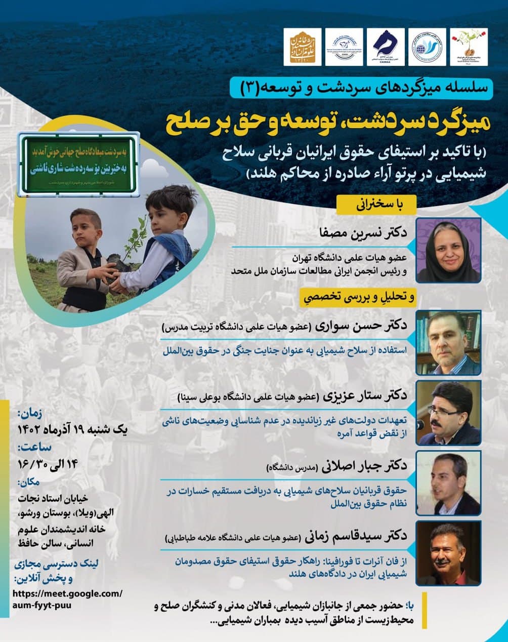 میزگرد "سردشت، توسعه و حق بر صلح" روز یکشنبه ۱۹ آذر در سالن حافظ خانه اندیشمندان علوم انسانی برگزار می شود.