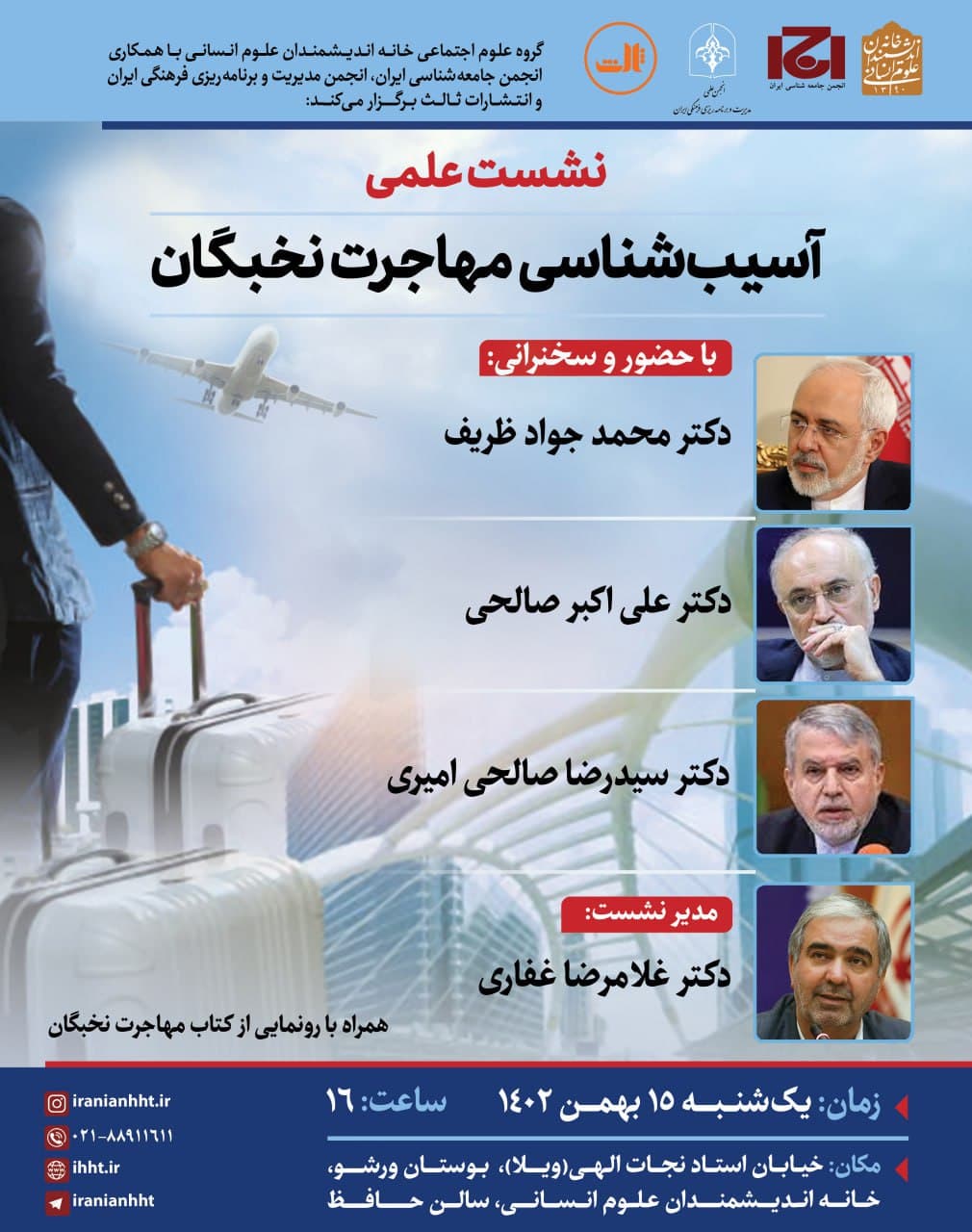 به گزارش روابط عمومی خانه اندیشمندان علوم انسانی، نشست "آسیب شناسی مهاجرت نخبگان" به همت گروه علوم اجتماعی خانه اندیشمندان علوم انسانی و با همکاری انجمن جامعه شناسی ایران، انجمن برنامه مدیریت و برنامه ریزی فرهنگی ایران و انتشارات ثالث، روز یکشنبه ۱۵ بهمن ۱۴۰۲ ساعت ۱۶ در سالن حافظ خانه اندیشمندان علوم انسانی برگزار می شود.