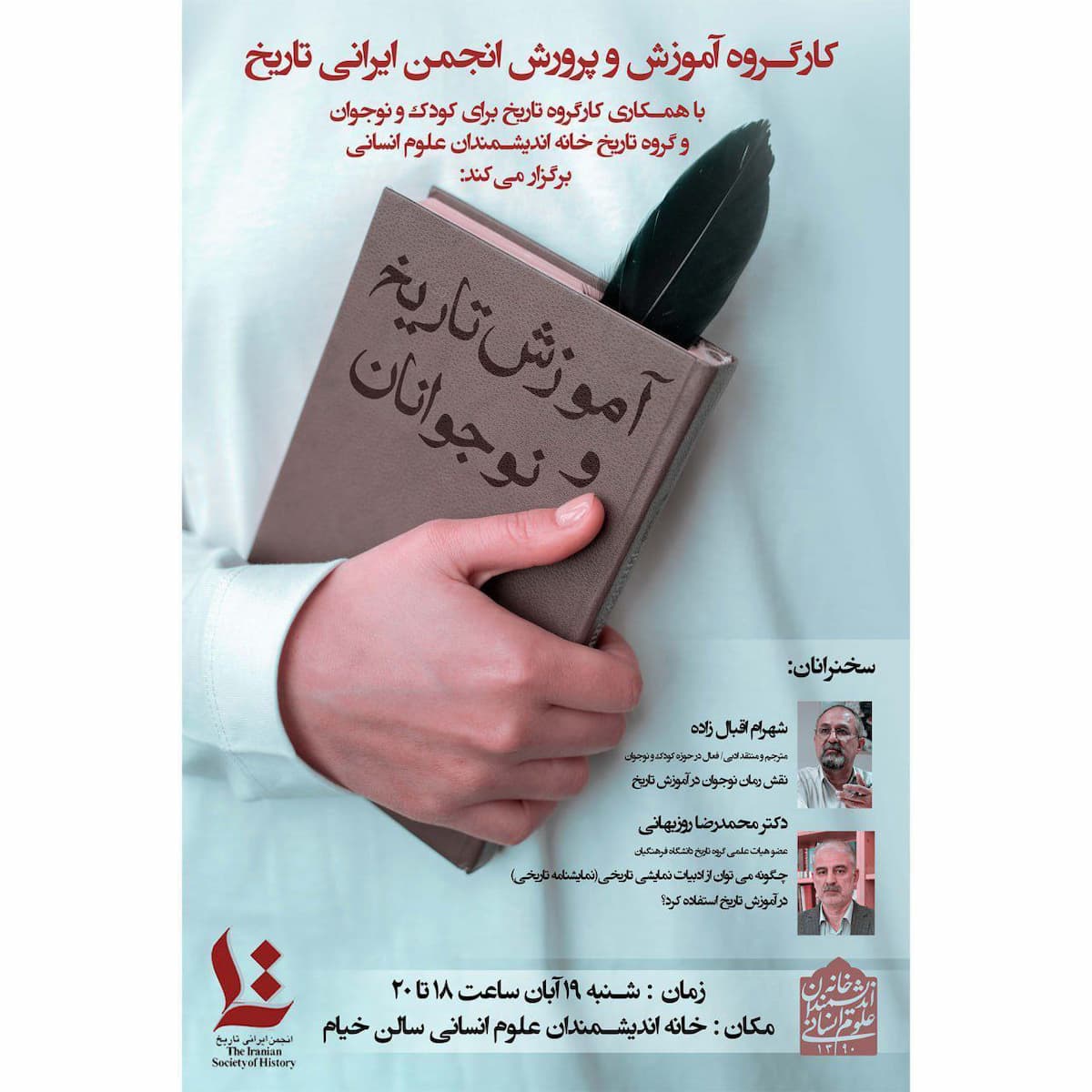 نشست "آموزش تاریخ و نوجوانان" روز شنبه 19 آبان در سالن خیام خانه اندیشمندان علوم انسانی برگزار می شود.