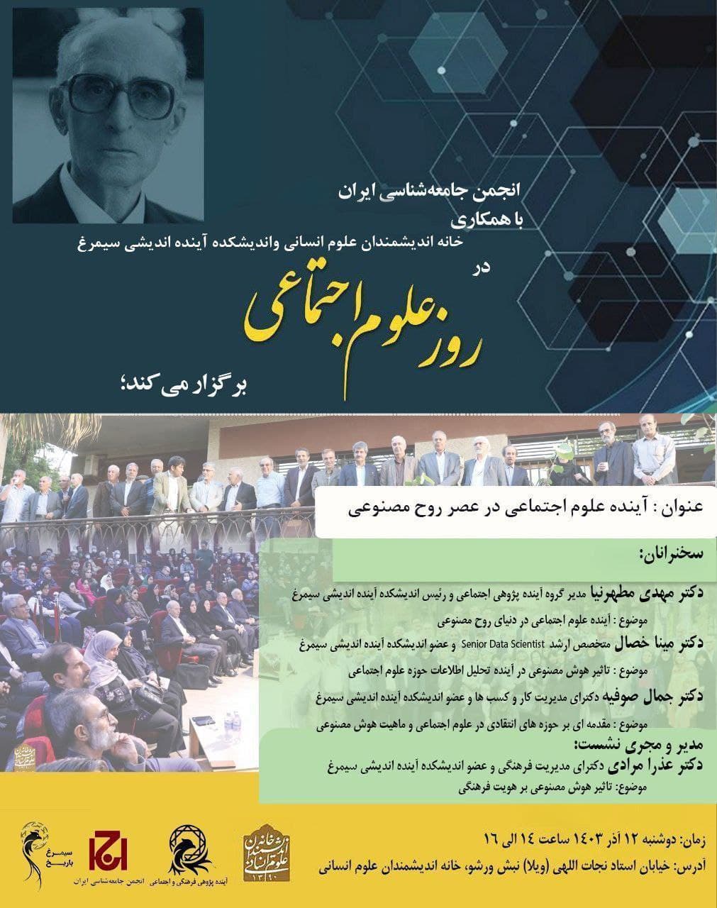 نشست "آینده علوم اجتماعی در عصر روح مصنوعی" روز دوشنبه 12 آذر در سالن حافظ خانه اندیشمندان علوم انسانی برگزار می شود.