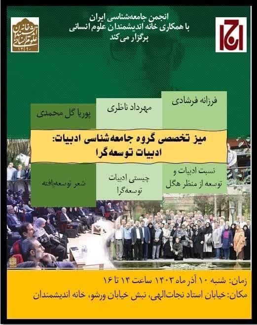 نشست "ادبیات توسعه گرا" روز شنبه 10 آذر در سالن حافظ خانه اندیشمندان علوم انسانی برگزار می شود.