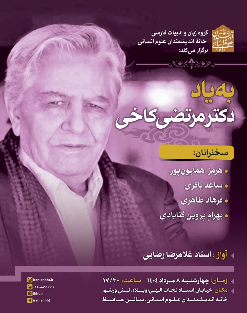 نشست "به یاد دکتر مرتضی کاخی" روز چهارشنبه 8 مرداد در سالن حافظ خانه اندیشمندان علوم انسانی برگزار می شود.