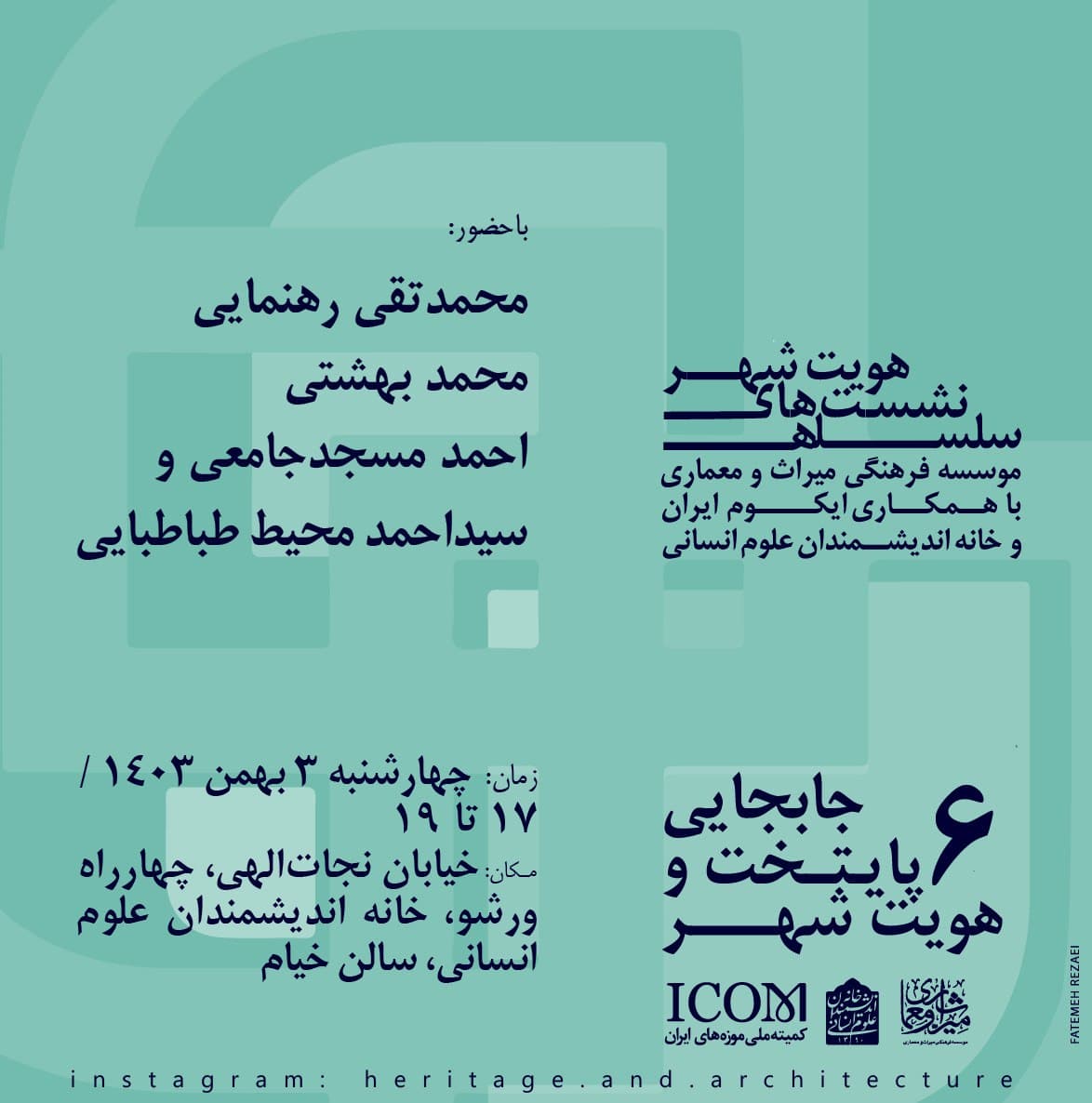 به گزارش روابط عمومی خانه اندیشمندان علوم انسانی، نشست "جابجایی پایتخت و هویت شهر" به همت موسسه فرهنگی میراث و معماری و با همکاری ایکوم ایران و خانه اندیشمندان علوم انسانی، روز چهارشنبه 3 بهمن 1403 ساعت 17 در سالن خیام خانه اندیشمندان علوم انسانی برگزار می شود.