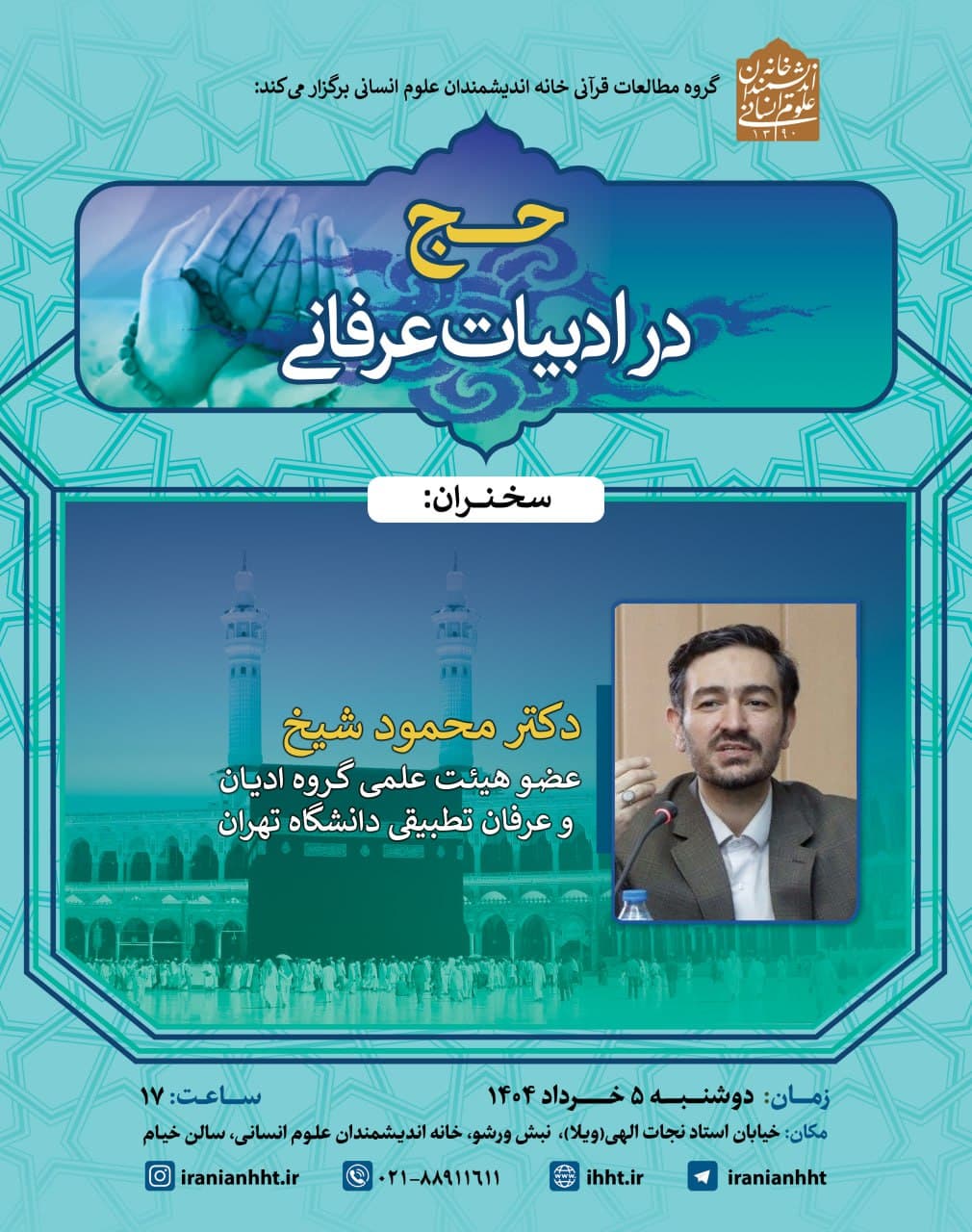 نشست "حج در ادبیات عرفانی" روز دوشنبه 5 خرداد در سالن خیام خانه اندیشمندان علوم انسانی برگزار می شود.