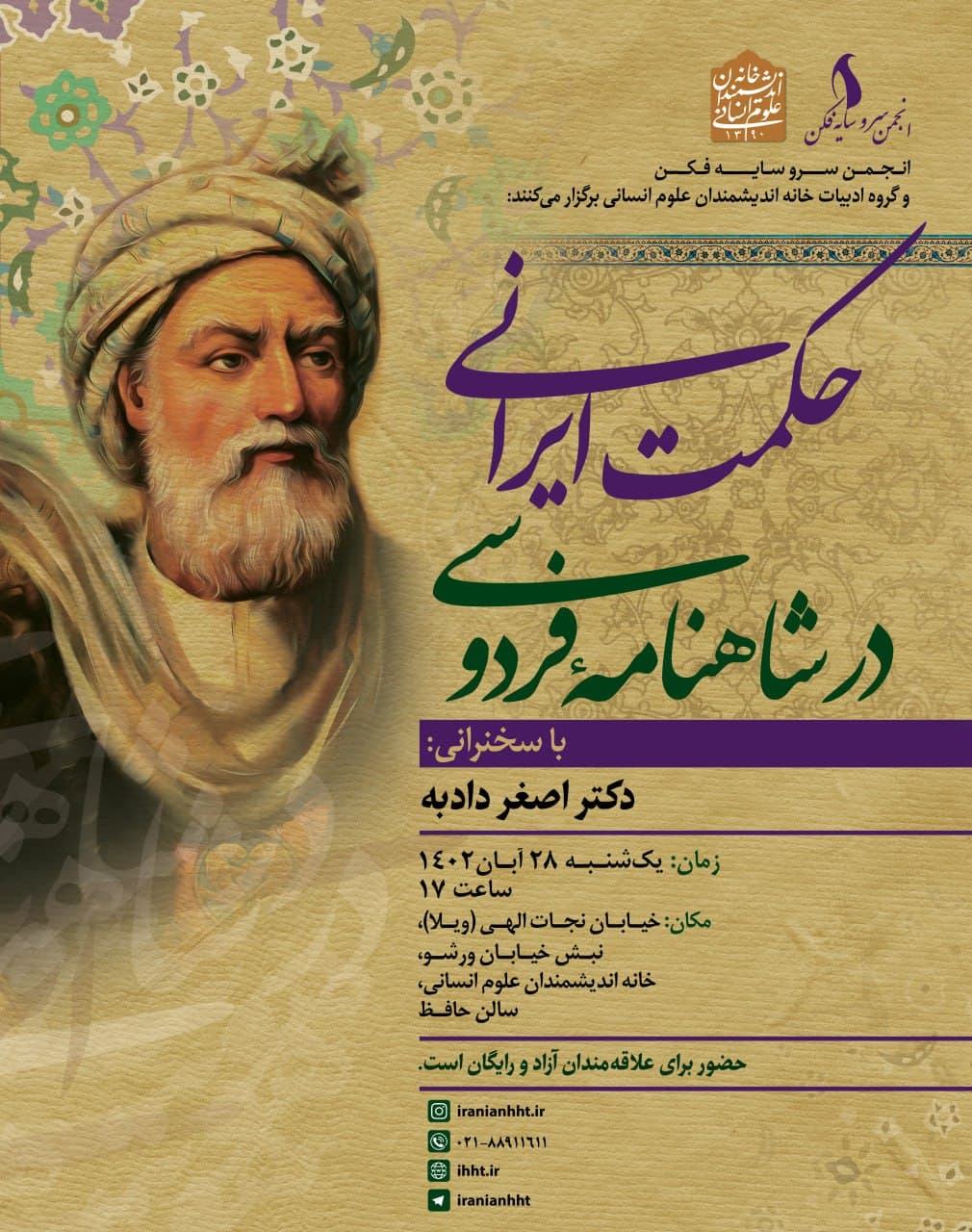 نشست "حکمت ایرانی در شاهنامه فردوسی" روز یکشنبه ۲۸ آبان در سالن حافظ خانه اندیشمندان علوم انسانی برگزار می شود.