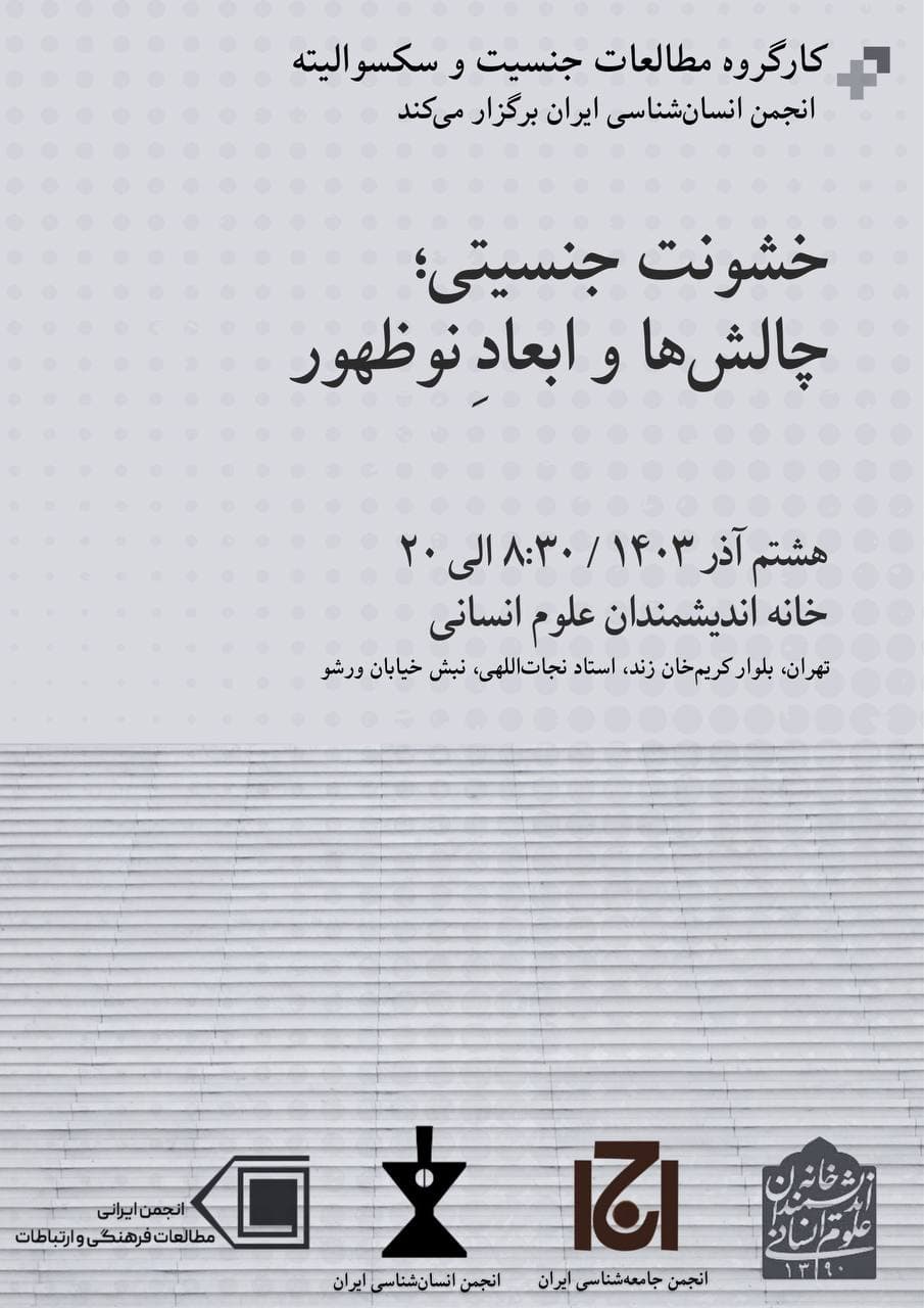 به گزارش روابط عمومی خانه اندیشمندان علوم انسانی، نشست "خشونت جنسیتی؛ چالش ها و ابعاد نوظهور" به همت انجمن انسان شناسی و با همکاری خانه اندیشمندان علوم انسانی، روز پنج شنبه 8 آذر 1403 ساعت 8:30 در سالن حافظ خانه اندیشمندان علوم انسانی برگزار می شود.
