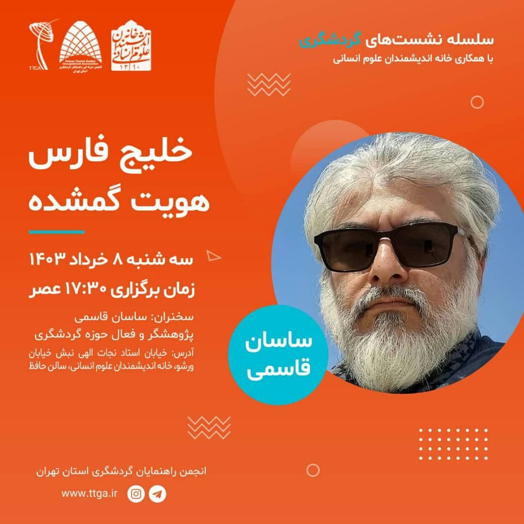 به گزارش روابط عمومی خانه اندیشمندان علوم انسانی، نشست "خلیج فارس، هویت گمشده" به همت انجمن حرفه ای راهنمایان گردشگری استان تهران و با همکاری خانه اندیشمندان علوم انسانی، روز سه شنبه 8 خرداد 1403 ساعت 17:30 با سخنرانی ساسان قاسمی در سالن حافظ خانه اندیشمندان علوم انسانی برگزار می شود.
