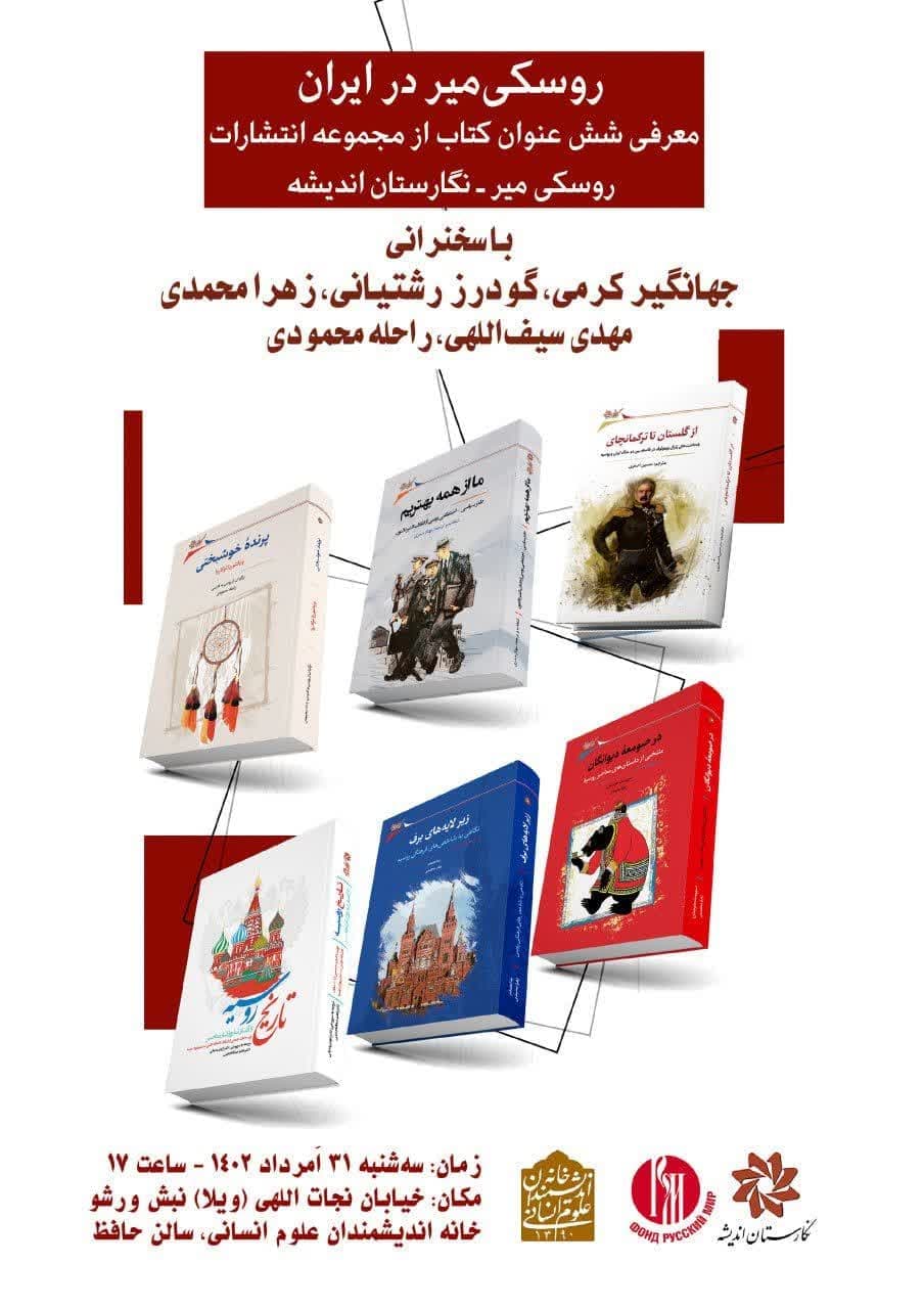 در این نشست، شش عنوان کتاب از مجموعه انتشارات روسکی میر معرفی می شود.