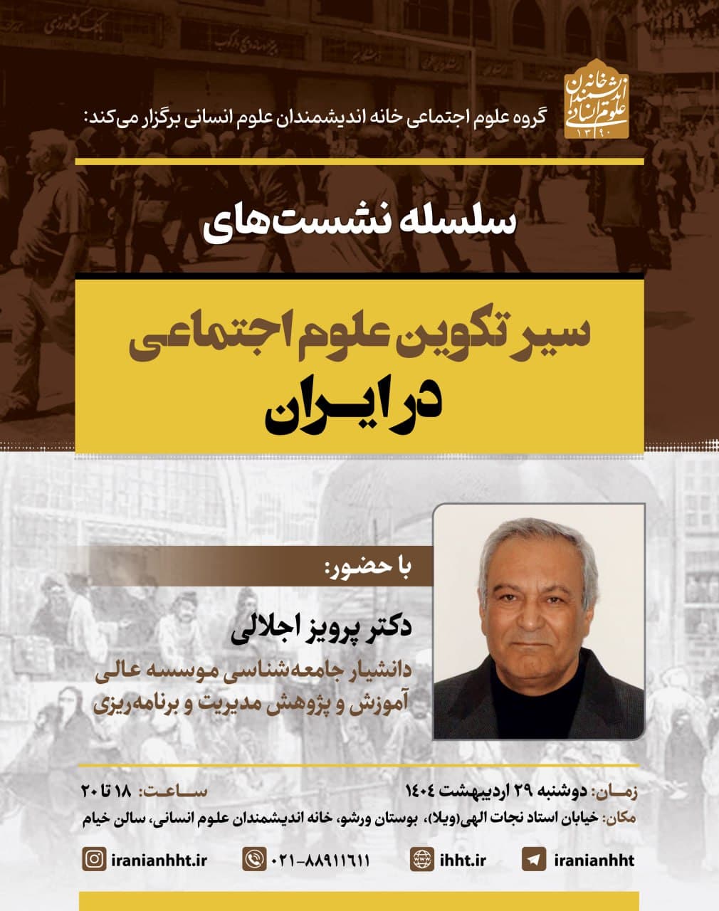 نشست "سیر تکوین در علوم اجتماعی ایران" روز دوشنبه 29 اردیبهشت در سالن خیام خانه اندیشمندان علوم انسانی برگزار می شود.