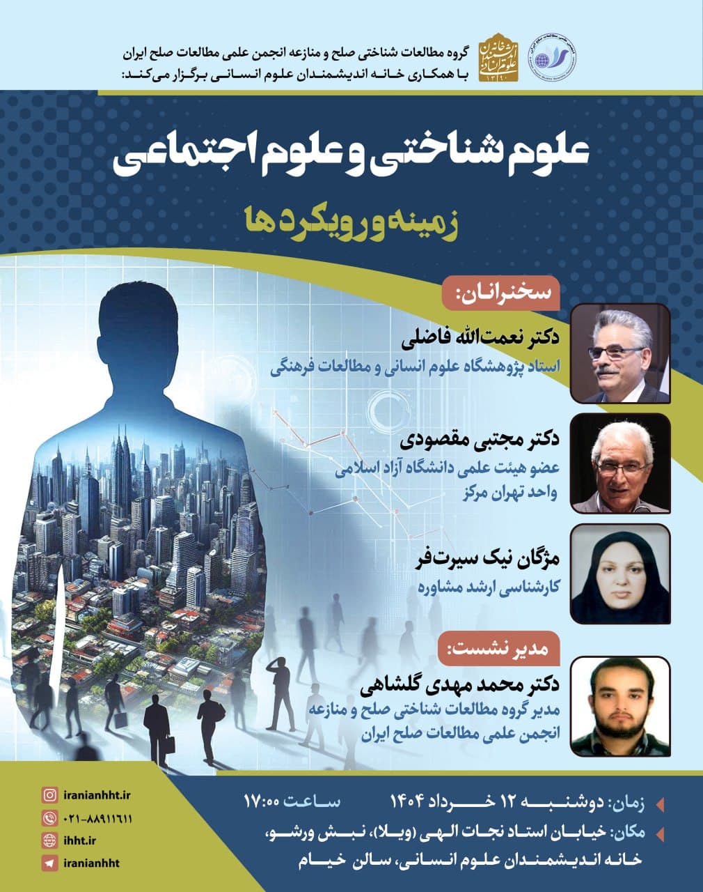 به گزارش روابط عمومی خانه اندیشمندان علوم انسانی، نشست "علوم شناختی و علوم اجتماعی؛ زمینه و رویکردها" به همت انجمن علمی مطالعات صلح ایران و با همکاری خانه اندیشمندان علوم انسانی، روز دوشنبه 12 خرداد 1404 ساعت 17 در سالن خیام خانه اندیشمندان علوم انسانی برگزار می شود.