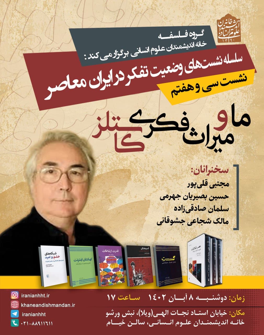 نشست "ما و میراث فکری کاستلز" روز دوشنبه ۸ آبان در سالن خیام خانه اندیشمندان علوم انسانی برگزار می شود.