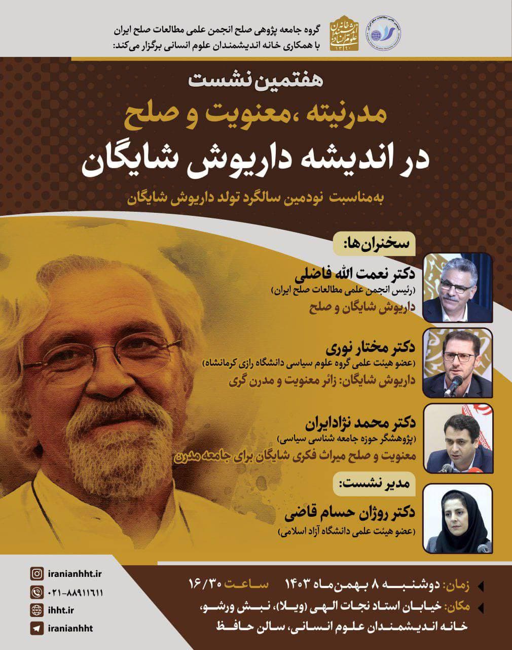 نشست "مدرنیته، معنویت و صلح در اندیشه داریوش شایگان" برگزار می شود