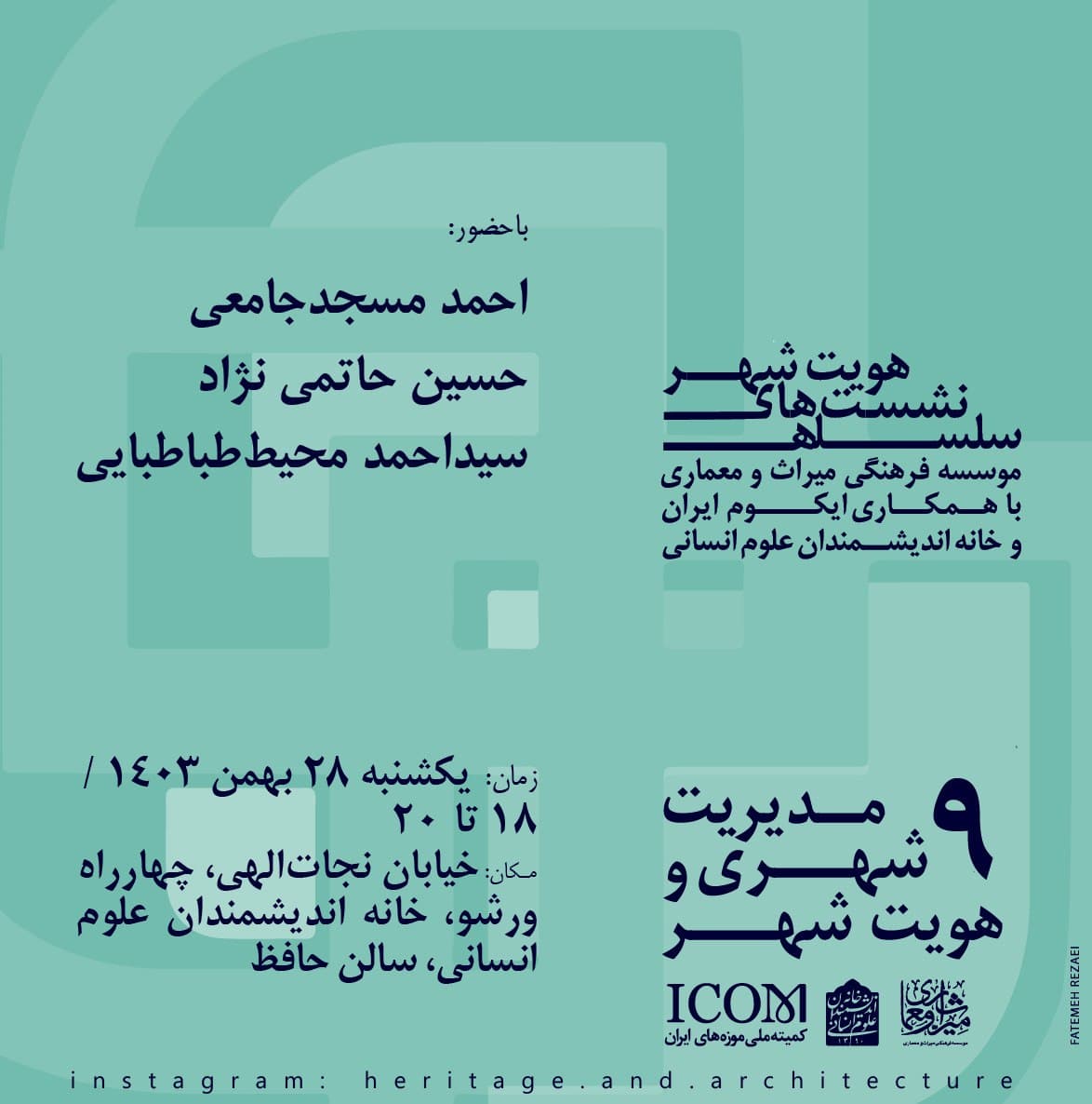نشست "مدیریت شهری و هویت شهر" روز یکشنبه 28 بهمن در سالن حافظ خانه اندیشمندان علوم انسانی برگزار می شود.