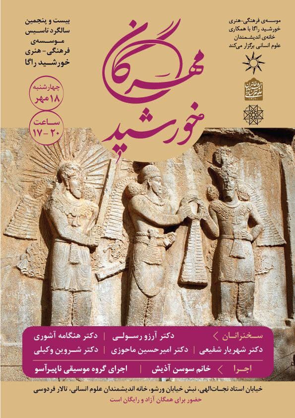 نشست "مهرگان خورشید" روز چهارشنبه 18 مهر در سالن فردوسی خانه اندیشمندان علوم انسانی برگزار می شود.