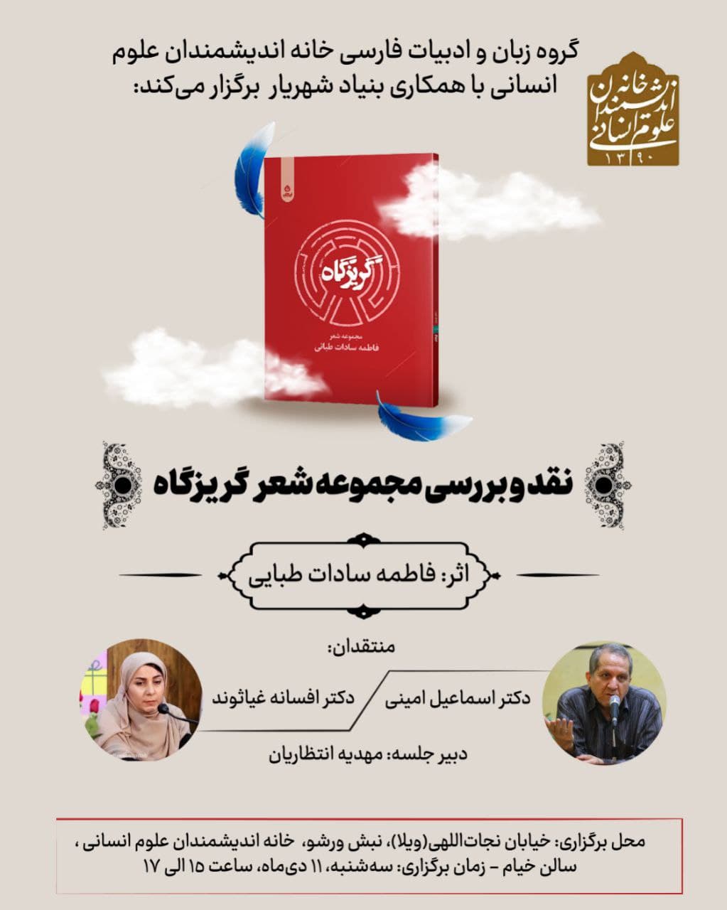 نشست "نقد و بررسی مجموعه شعر گریزگاه" برگزار می شود