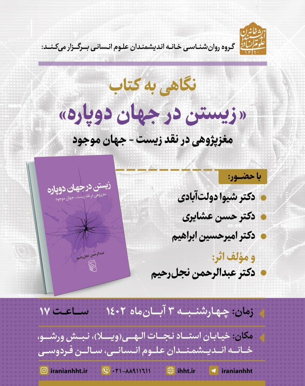 نشست نگاهی به کتاب "زیستن در جهان دوپاره" روز چهارشنبه ۳ آبان در سالن فردوسی خانه اندیشمندان علوم انسانی برگزار می شود.