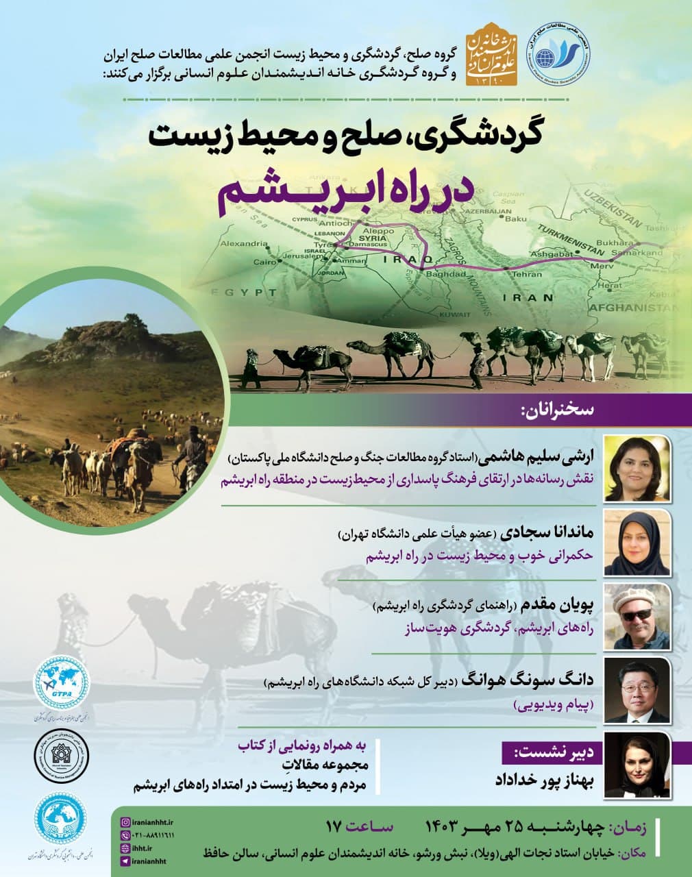 نشست "گردشگری، صلح و محیط زیست در راه ابریشم" روز چهارشنبه 25 مهر در سالن حافظ خانه اندیشمندان علوم انسانی برگزار می شود.