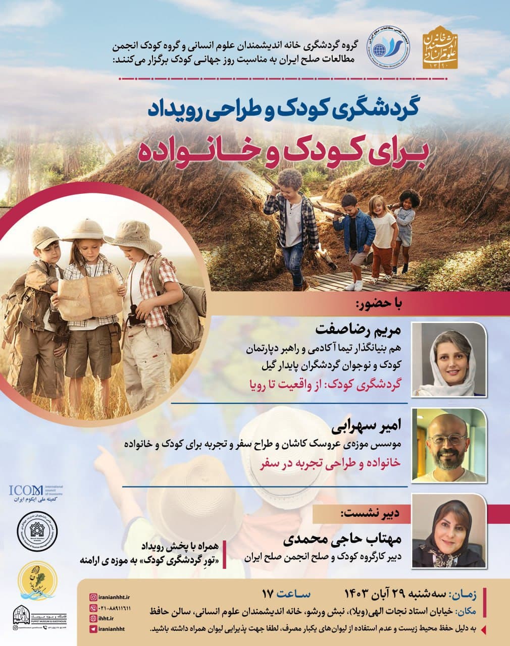 نشست "گردشگری کودک و طراحی رویداد برای کودک و خانواده" روز سه شنبه 29 آبان در سالن حافظ خانه اندیشمندان علوم انسانی برگزار می شود.
