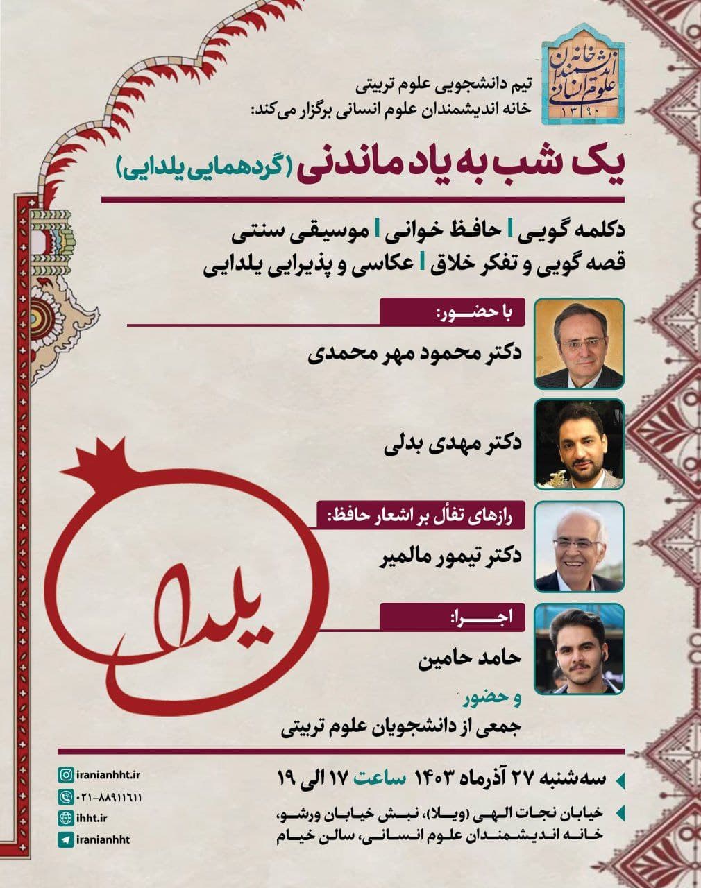 نشست "یک شب به یاد ماندنی(گردهمایی یلدایی)" برگزار می شود