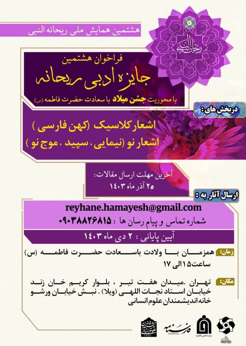 هشتمین جایزه ادبی ریحانه برگزار می شود