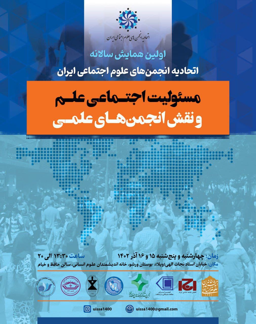 به گزارش روابط عمومی خانه اندیشمندان علوم انسانی، همایش "مسئولیت اجتماعی علم و نقش انجمن های علمی" به همت اتحادیه انجمن های علوم اجتماعی ایران و با همکاری خانه اندیشمندان علوم انسانی، روزهای چهارشنبه و پنج شنبه، ۱۵ و ۱۶ آذر ۱۴۰۲ ساعت ۱۳:۳۰ در سالن های حافظ و خیام خانه اندیشمندان علوم انسانی برگزار می شود.