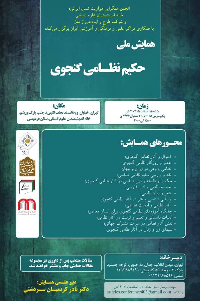 به گزارش روابط عمومی خانه اندیشمندان علوم انسانی، همایش ملی حکیم نظامی گنجوی، به همت انجمن همگرایی مواریث تمدن ایرانی و با همکاری خانه اندیشمندان علوم انسانی، روز شنبه 11 اسفند 1403 ساعت 15 در سالن فردوسی خانه اندیشمندان علوم انسانی برگزار می شود.